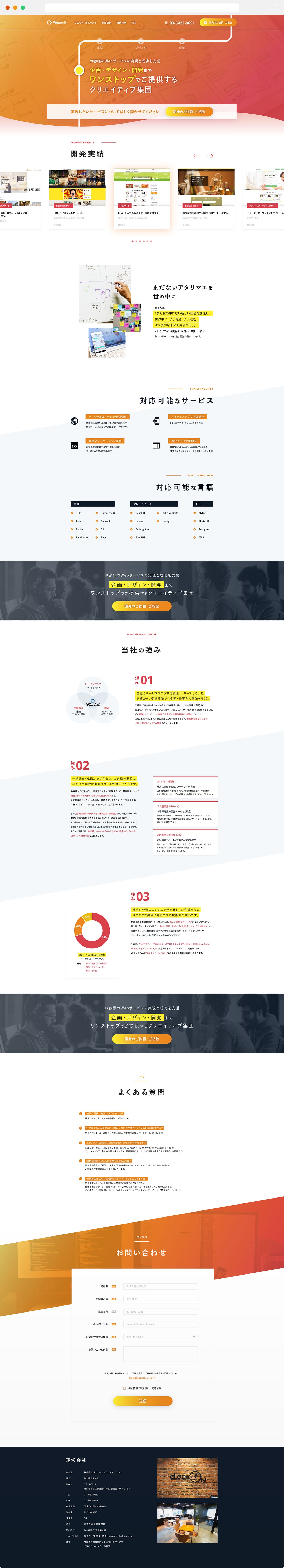 Whereas personally I was leaning towards a cool-toned theme for the landing page to match the company branding, I incorporated some animations in order to strengthen the feeling of a company operating in a web development industry.