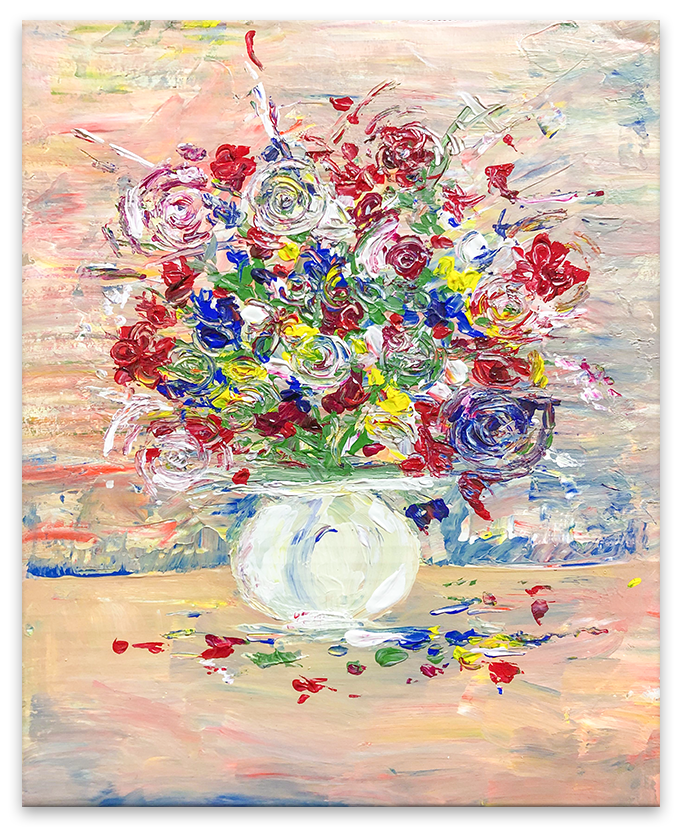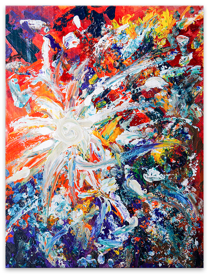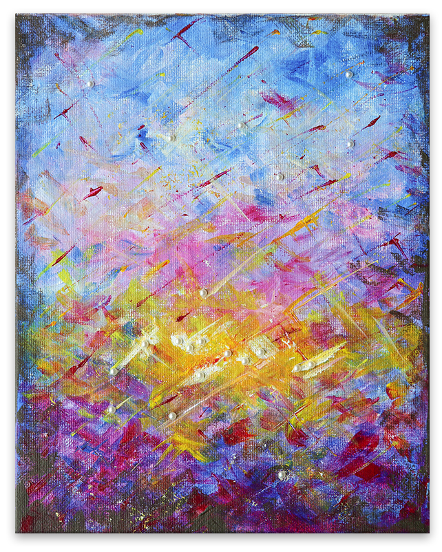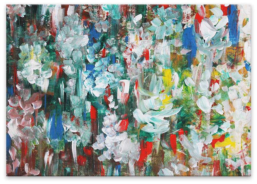 I start out with one abstract vague idea in my head and, more often than not, end up with a completely different piece. At times I squeeze out too much acrylic paint onto a palette and so emerges another piece just to use up said paint. More often than not, I like these so-that-the-paint-wouldn’t-go-to-waste pieces more than the thing I set out to create in the first place.